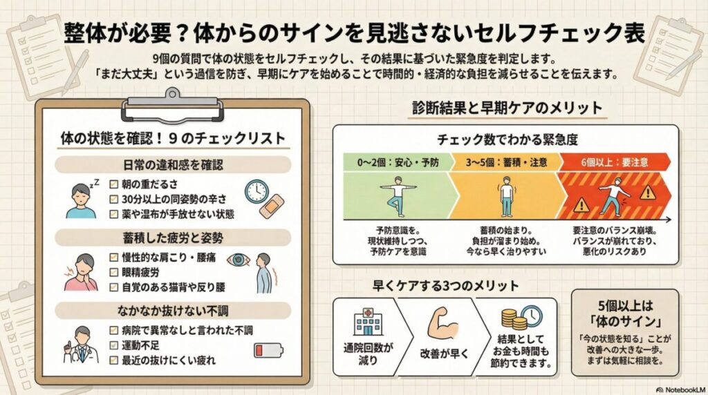 体の症状は早めのケアに越したことはありません。