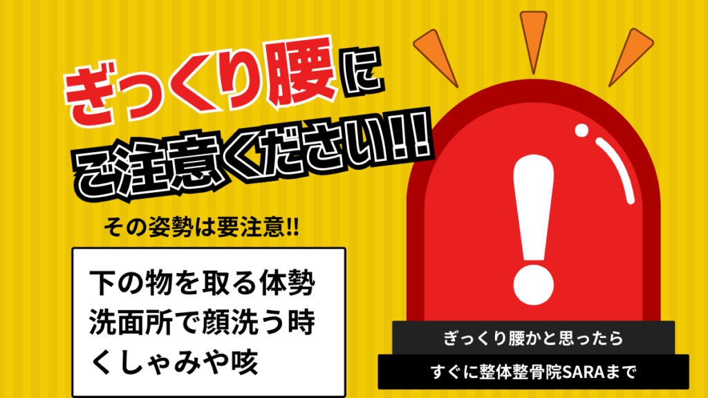 「前かがみ+ひねり+荷重」「中腰からの立ち上がり」「くしゃみ・咳」などの瞬間的負荷がトリガーになる。